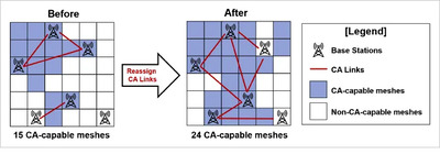 Based on the results of the optimisation, a CA link configuration was generated and used to simulate the CA-capable coverage area. The simulation confirmed that CA could be made available over a broader area compared to conventional configurations.
